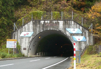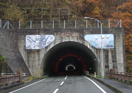 大股川沿いを通る国道397号のトンネル。下大股から国道107号までの2km程の間に3本続けて存在する。
